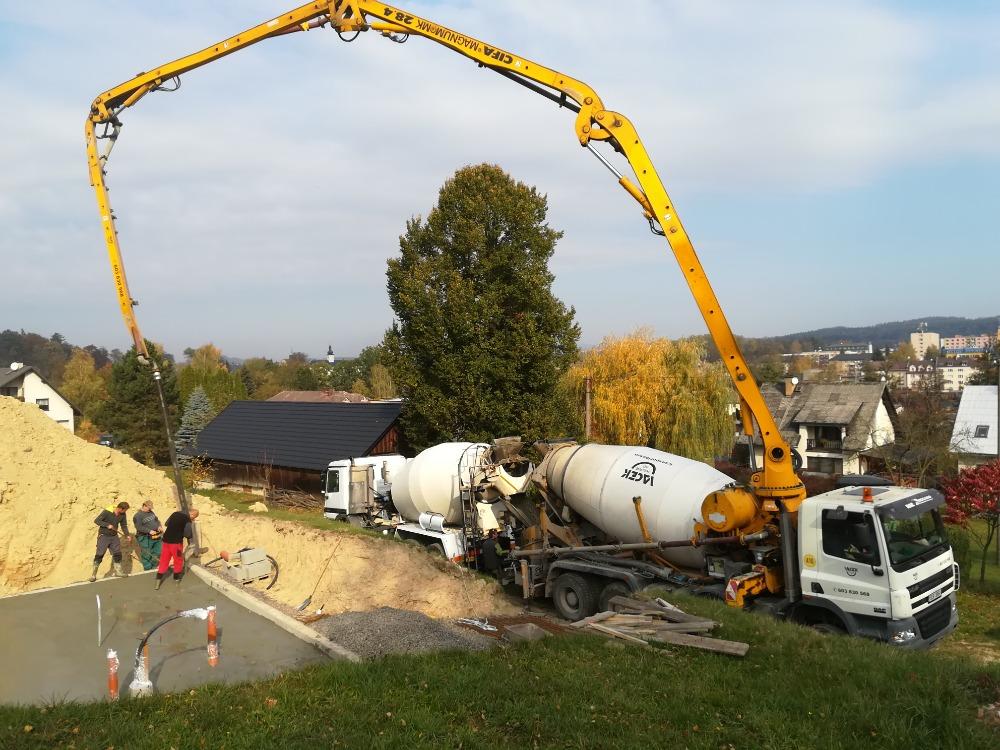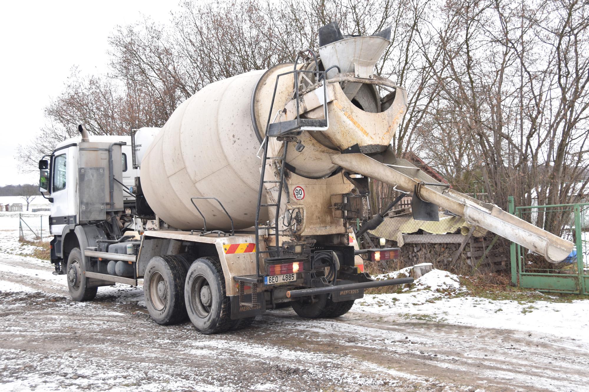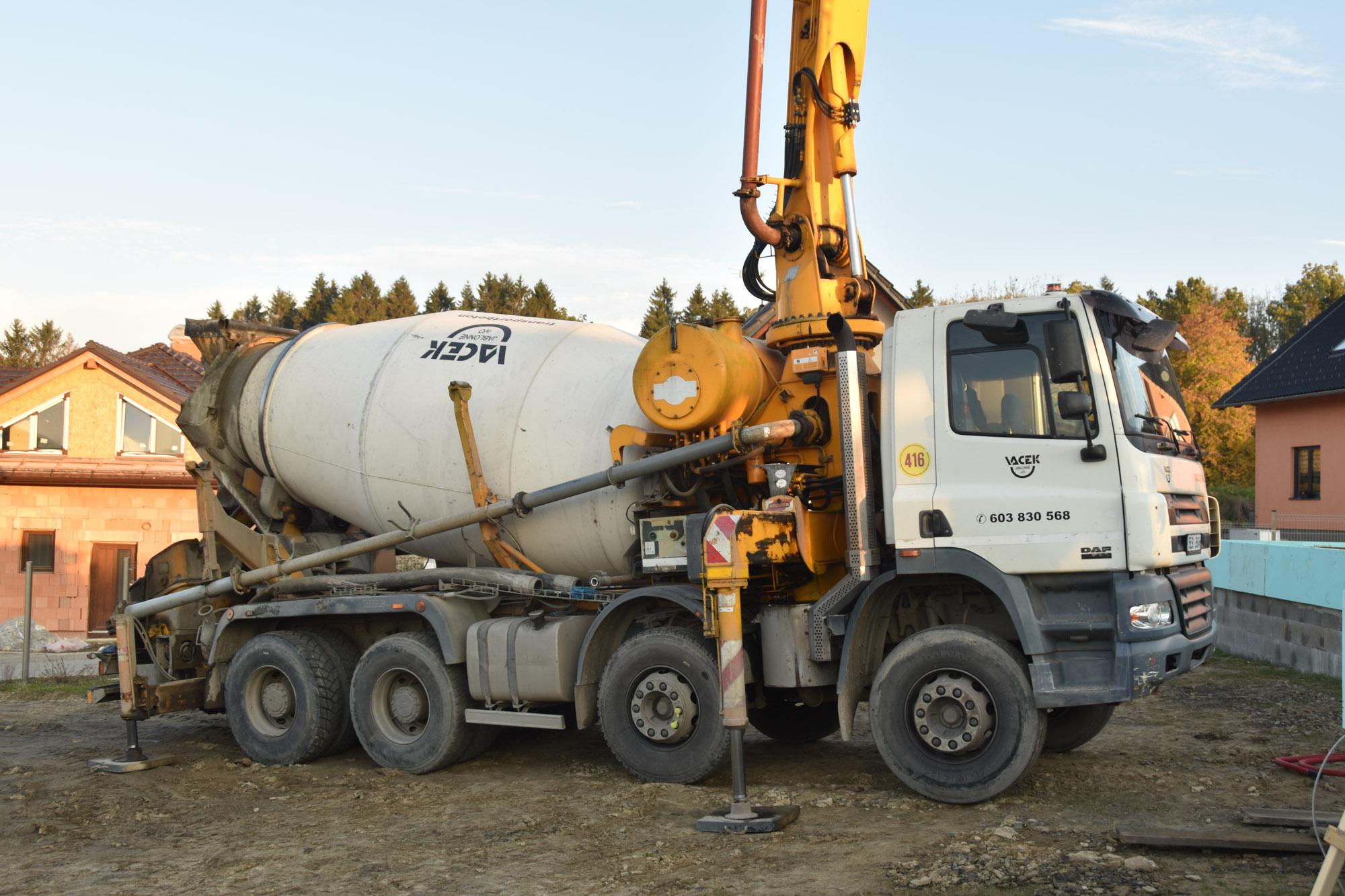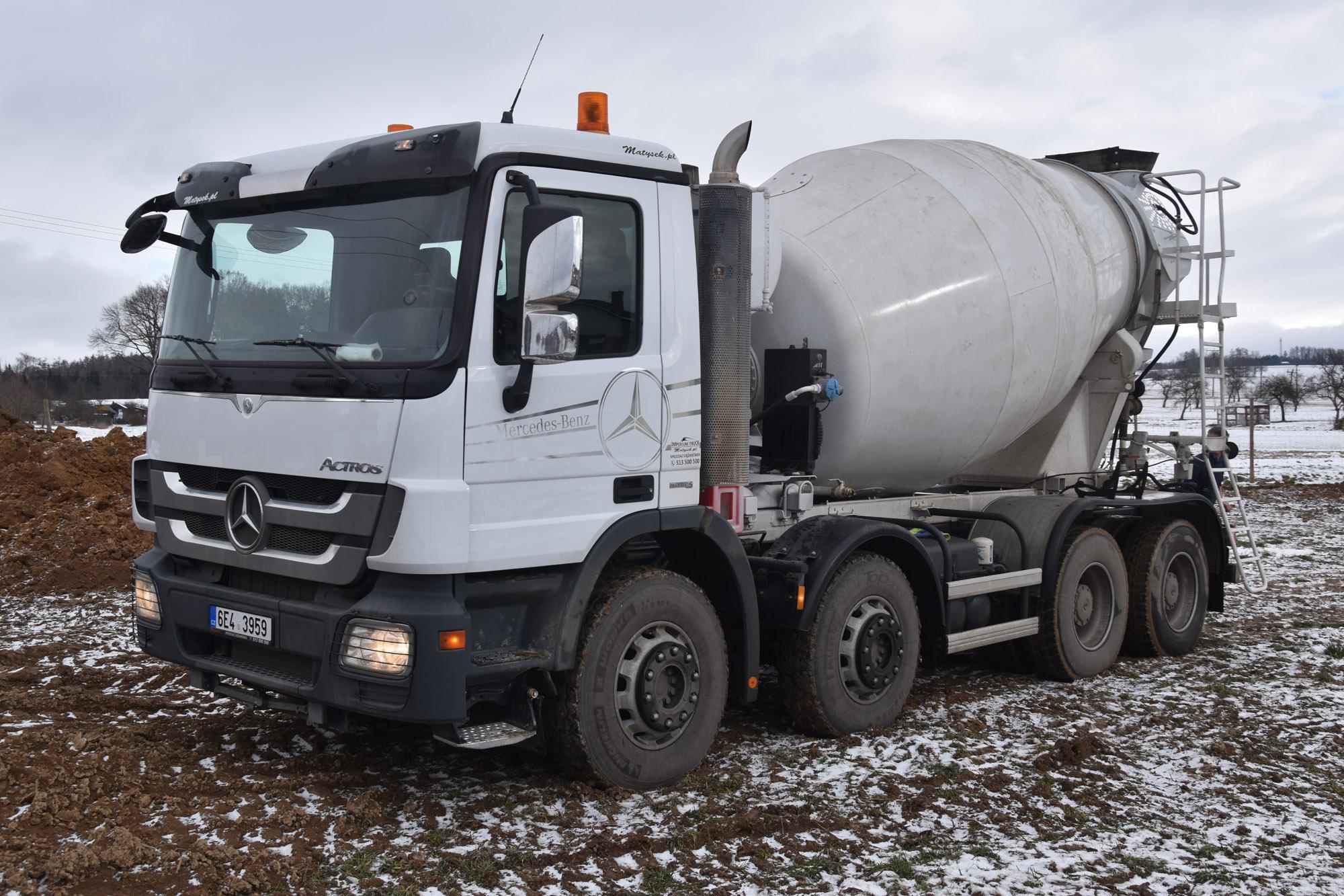 K dopravě betonových směsí, betonových výrobků a stavebnin máme k dispozici celkem 4 nákladní vozidla včetně 2 autodomíchávačů a vozidla DAF s pumpou.